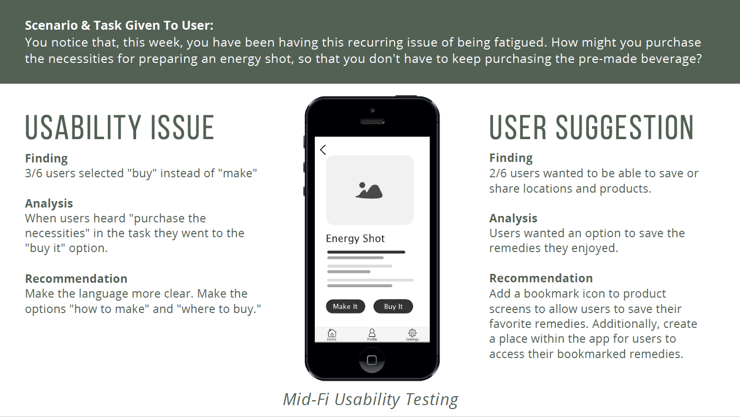 We included relevant touchpoints that highlighted the user’s existing behavior within the problem space of energy and healing with respect to nutrition.